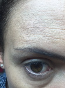 Zoom en las arrugas de la frente (pueden ver que NO se queda entre líneas…cosas que es muy normal con este tipo de bases)