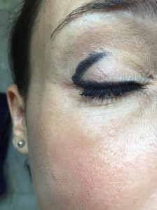 - No vamos a delineador arriba por dentro, ni hasta la punta del ojo. Ahora cuando vean el otro «modelo» van a notar la diferencia en este punto.
