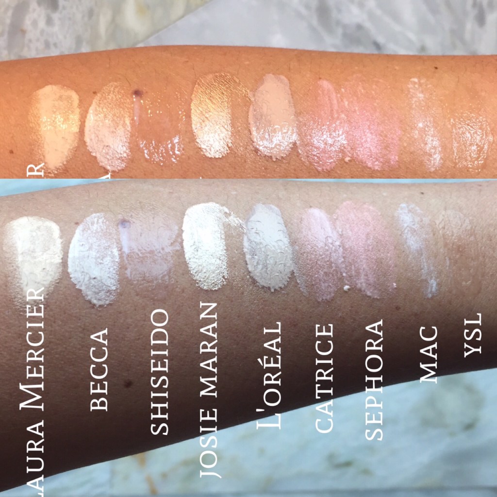 Les dejo una foto comparando el de Becca, que hasta ahora es el más cercano a mi favorito. Vean el color que es distinto (dorado como el de Laura el de Becca vs más rosado el de Catrice, sin ser blanco).