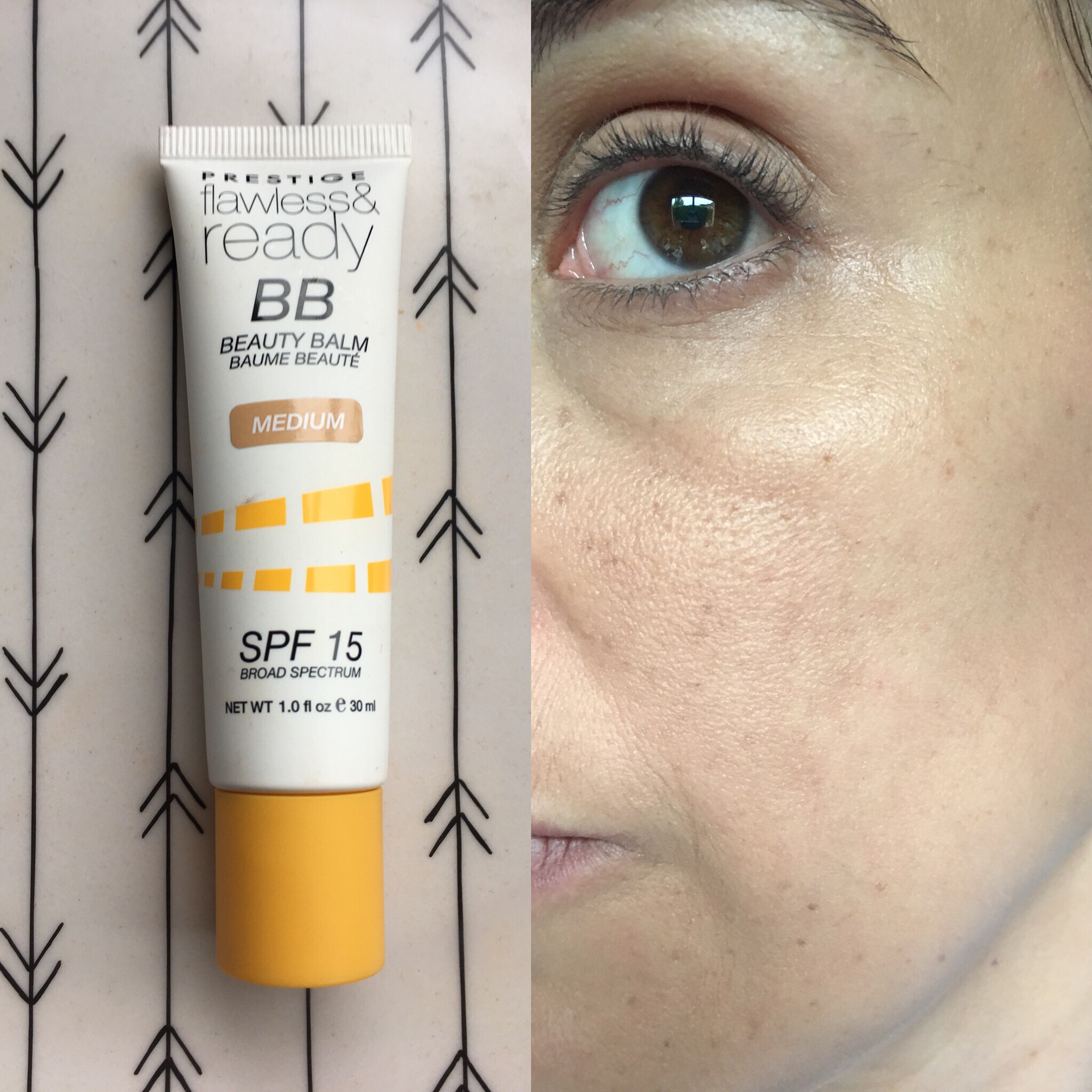 Una que tampoco me convenció porque es como que no termina de secar, y encima es muuuuy transparente, es la de Prestige. Pueden comparar con la de L’Oréal arriba, vean lo liviana rozando lo imperceptible. Mis manchas en la piel se ven por completo.