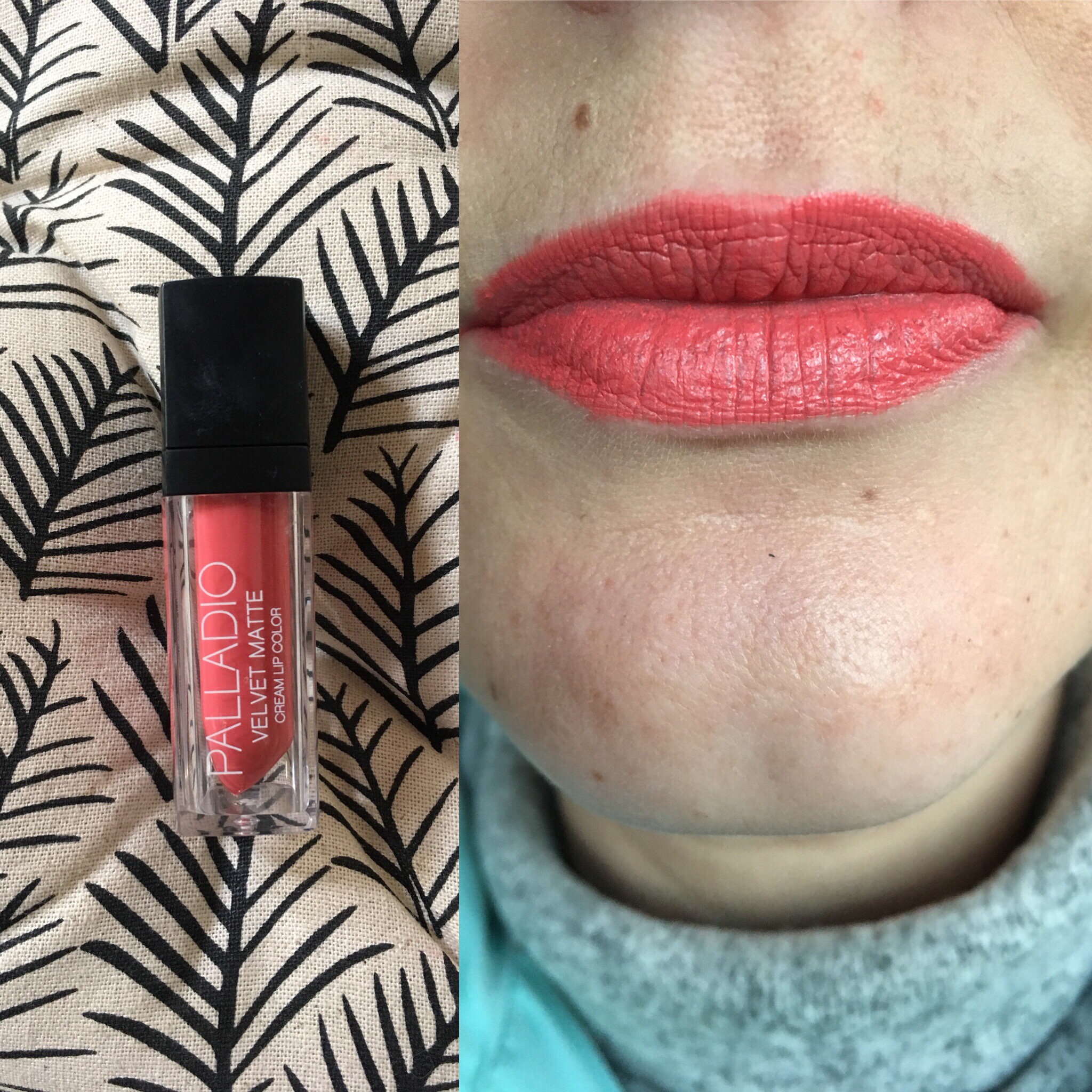 El de Palladio es Velvet tal cual dice su nombre, tampoco termina de secar, menos que el anterior. Tiene un aire a los de Victoria Secret pero cero mate. Mucho más gloss de lo que debería. Se super transfiere. Eso si, es muy suave a los labios, tiene como un gusto chocolatoso, y cuando se va yendo, es como que deja parejo los labios. Porque no se «pega» tanto, es más como una crema.
