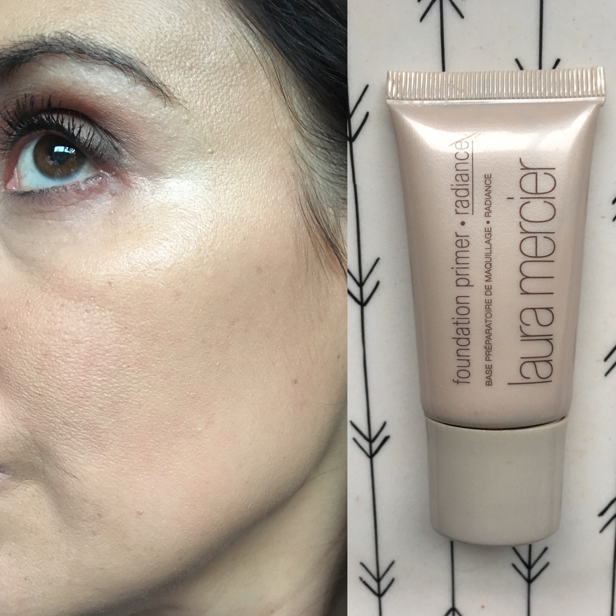 Para empezar, si lo que están pensando en este momento es «puedo entonces conseguir este producto mezclando mi base con mi primer o iluminador». Si...ahora, no solo es algo más de trabajo, sino que la base tiene que ser liviana para que no quede pesada para aplicar arriba o abajo de la misma base, y además el efecto iluminador en este caso es solo un efecto jugoso-acuoso, sin NADA de perlitas, glitter o cualquier iluminación tipo metálica. Esto está más cerca de un glow «mojado» que de uno tornasol. ¿Me explico?
