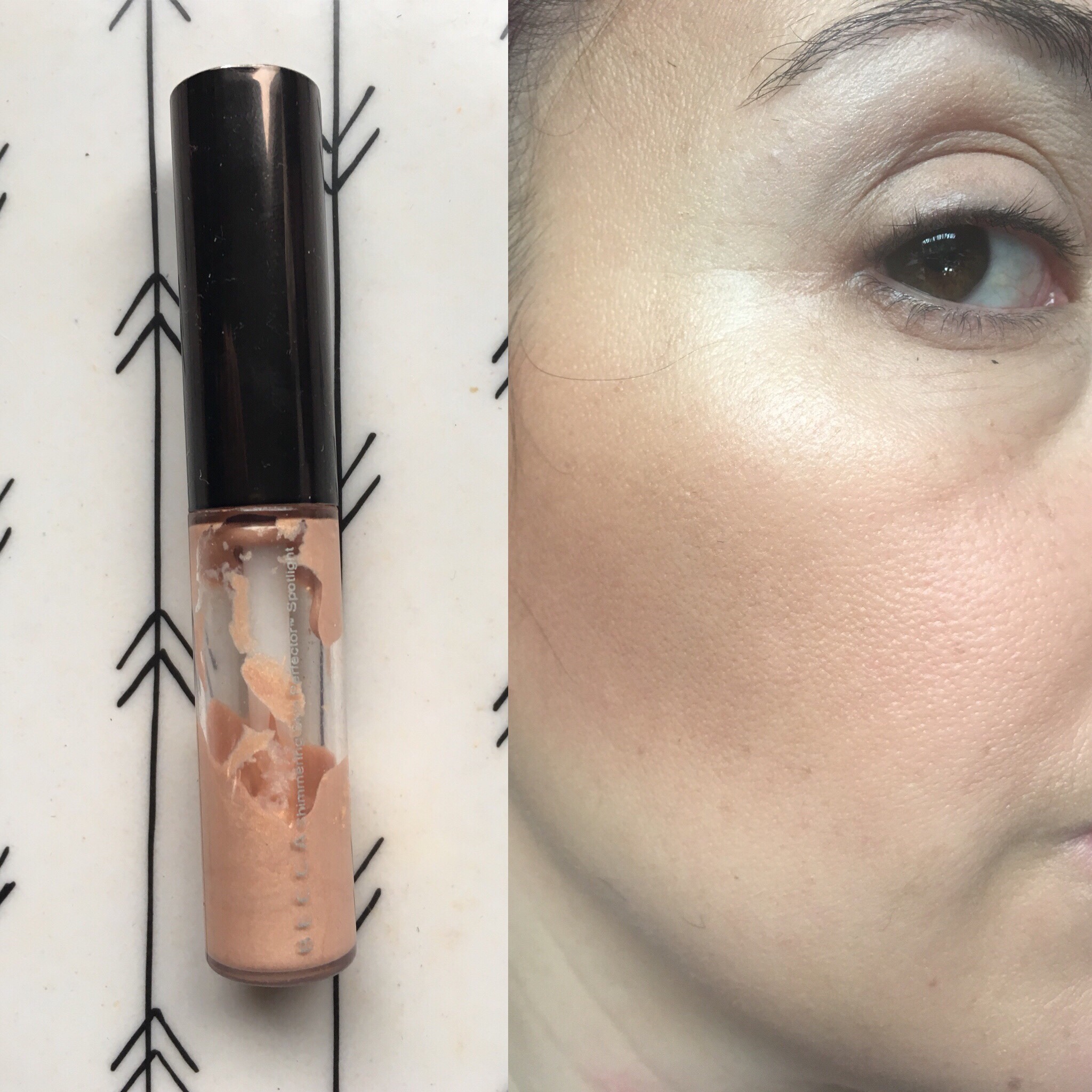 Volviendo al brillo «único». Si bien creo que como iluminador este producto es mejor que como primer, sinceramente esperaba más….muuuuuucho más. ¡Y ojo! En las fotos el brillo es mucho más notable que en la vida. Lo cual es bueno si lo necesitas para una producción sino bájenle un 30% de lo que están viendo porque no se ve taaaaan iluminado frente a frente.