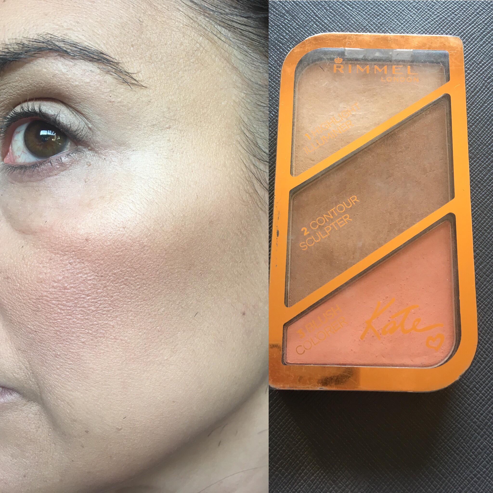 - Paleta de Contorno de Rimmel «Kate». Yo elegí el tono 2. Cuesta unos $460 pesos (como 15 usd…afuera se consigue por menos).