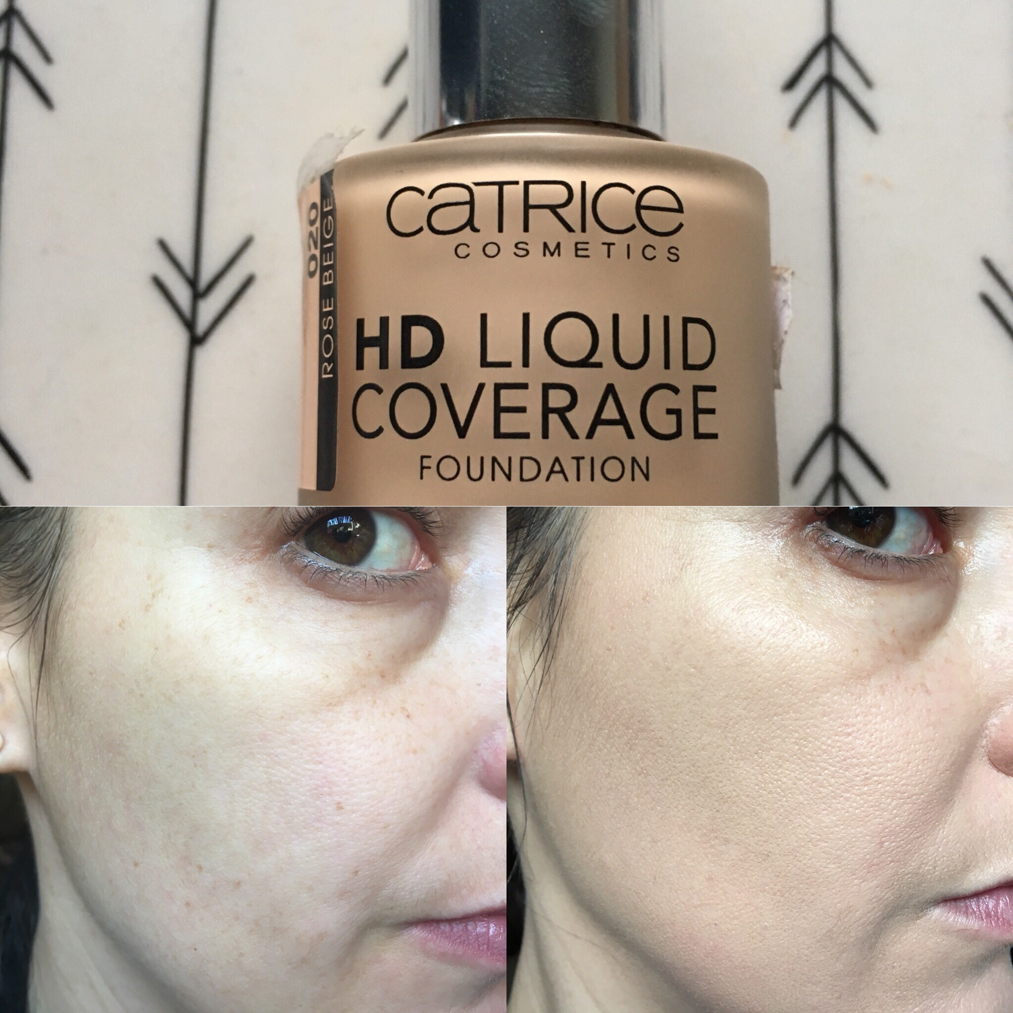 La deje casi para el final, pero debo decir que esta base es un gran descubrimiento gracias a ustedes. Creo que nunca me hubiera animado a probarla por sus claims de «dura 24hs/efecto matificante» pero la HD Liquid Coverage de Catrice me impactó.