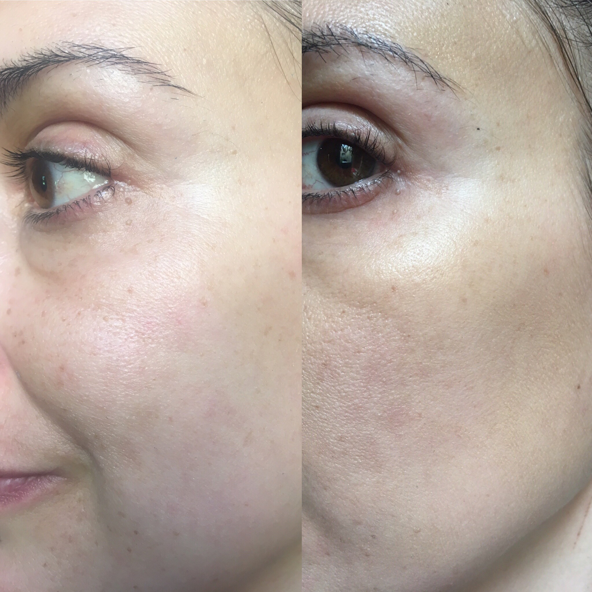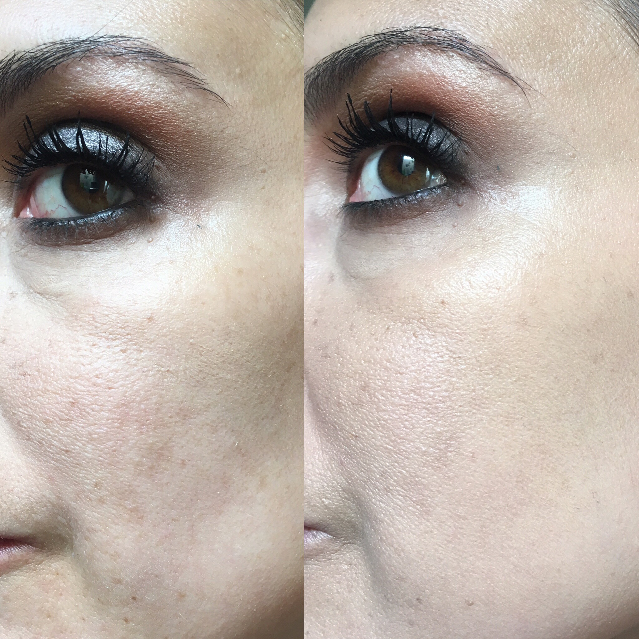 Y así queda usándola de esta otra manera. Verán que claramente no se convierte en una base súper cubriente, pero si hay una diferencia de concentración de pigmento que ayuda a disimular mejor las manchas o marcas en la piel. O incluso si simplemente quieren una base más cubritiva para usar de noche.
