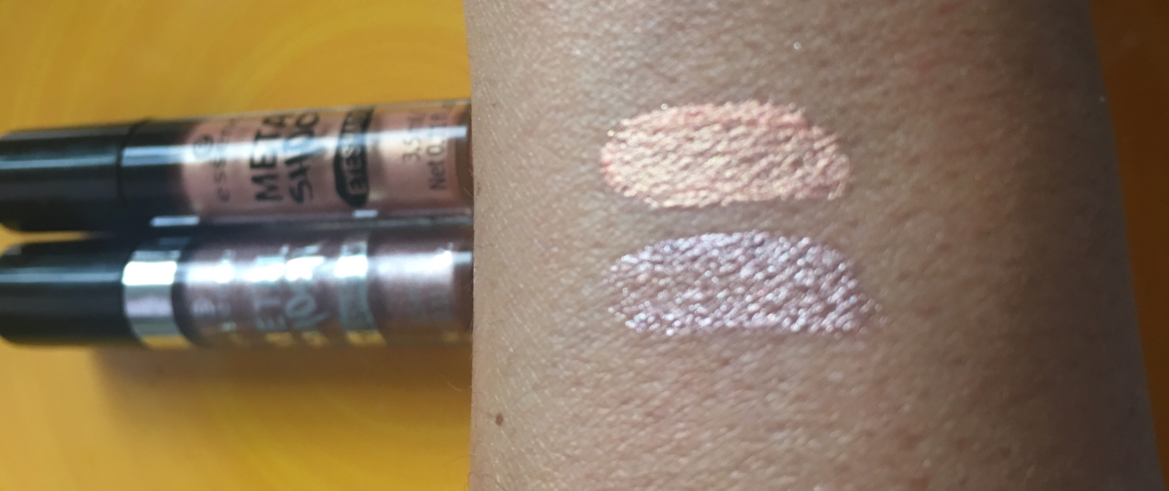 Voy a empezar por las de Essence. Compré 2 tonos distintos el 07 (medio coral dorado) y la 02 (violeta metálico).