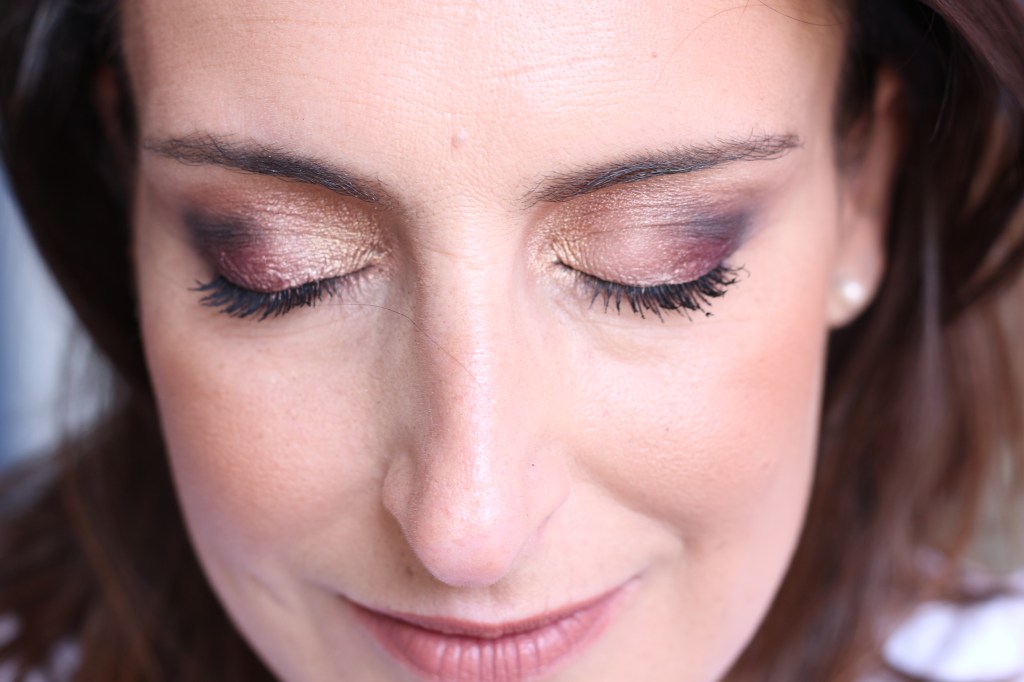 Les dejo una foto del look que hice con el tono 313 (que asoma desde el lagrimal hasta mitad del párpado) + el resto de tonos naranjas, violetas y grises que usé de la paleta.