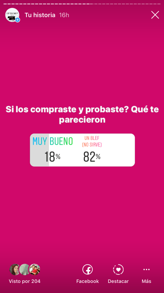 Así que sin ningún tipo de prejuicio (salvo el de las promesas milagrosas) me dispuse a conocer esta marca. Estas fueron sus respuestas en ese momento cuando hablamos de la marca en mi cuenta. La mitad de ustedes conocían la marca. Muy pocos de los que la probaron la amaron. Por otro lado muchas reconocieron que si se vendería en otro lugar, se animarían a probarlos.