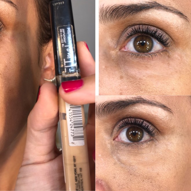 Fit Me es de los 3 el que menos cubre, necesita más cantidad para neutralizar mejor la oscuridad. Yo apliqué la misma cantidad para que sea igual para la foto. Si yo usara Fit Me, seguramente pondría más cantidad, porque se que me quedo corta con tan poco. La ventaja es que por su textura, permite sumar más cantidad sin resecar ni dejar pesada la zona.