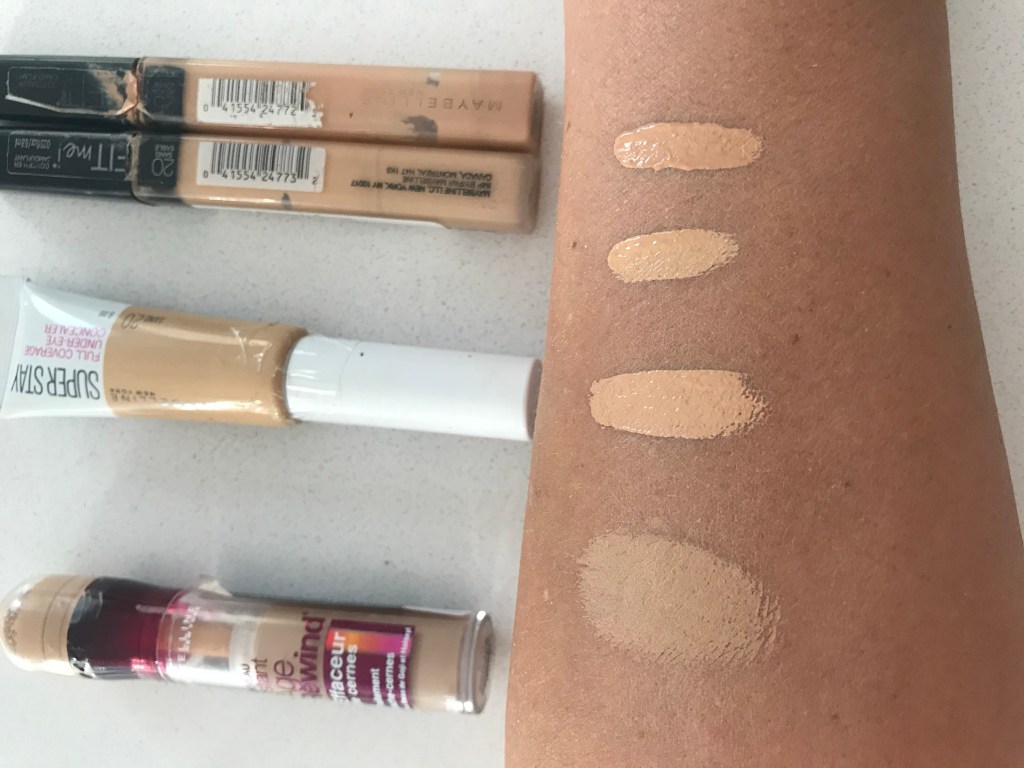 Dicho todo esto, y pese a lo que puedan ver en estas fotos sobre lo que sucede aplicando una única capa de cada uno (donde Age Rewind es claramente el mejor «tapando» la oscuridad), me quedo por el precio y la versatilidad del producto, con Fit Me. Super Stay no está mal, pero el precio es más elevado versus Fit Me, y si bien lo supera en cobertura, no sé si tanto como para pagar esa diferencia de precio.-