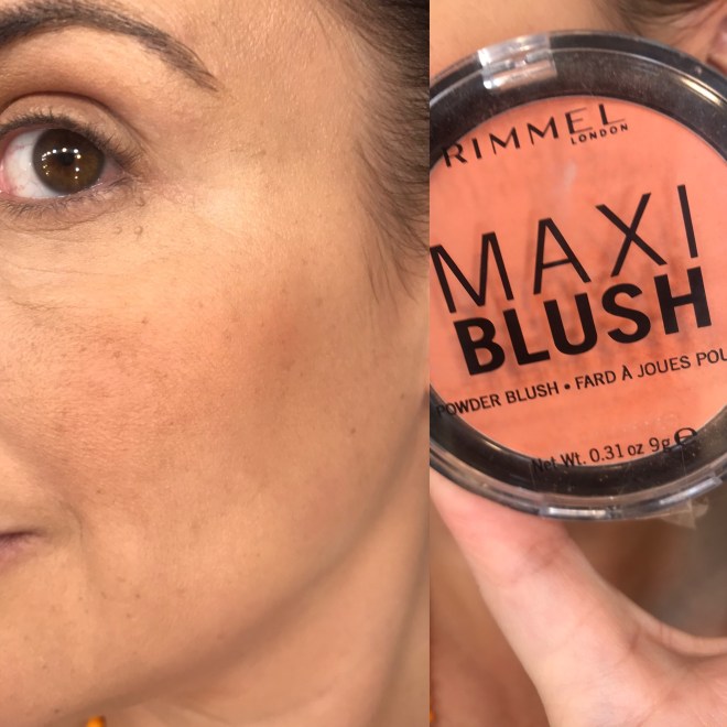 Voy a empezar por dos que me fascinaron, porque cumplen muchos de los puntos que mencioné arriba: El rubor de Revlon (que en mi foto verán la presentación que viene con espejo y brocha, pero a veces viene diferente) y el nuevo Maxi Blush de Rimmel.