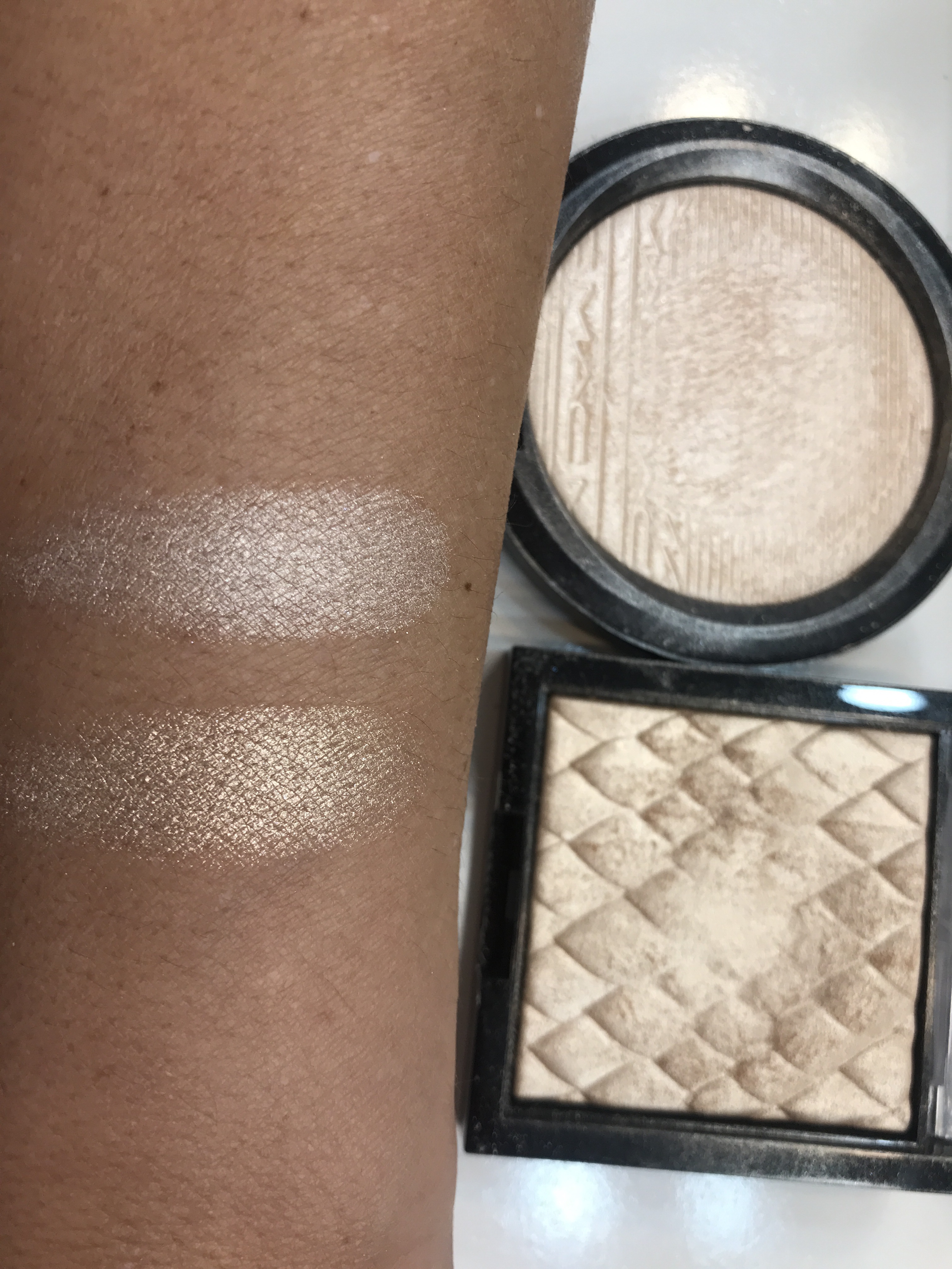 Los dos son del tipo polvo «cremoso». El de MAC es famoso, entre todos los iluminadores de la marca por «su fórmula fresca, cremosa y casi fluída para acabado luminoso». Además dice que tiene una duración de hasta 10 horas.