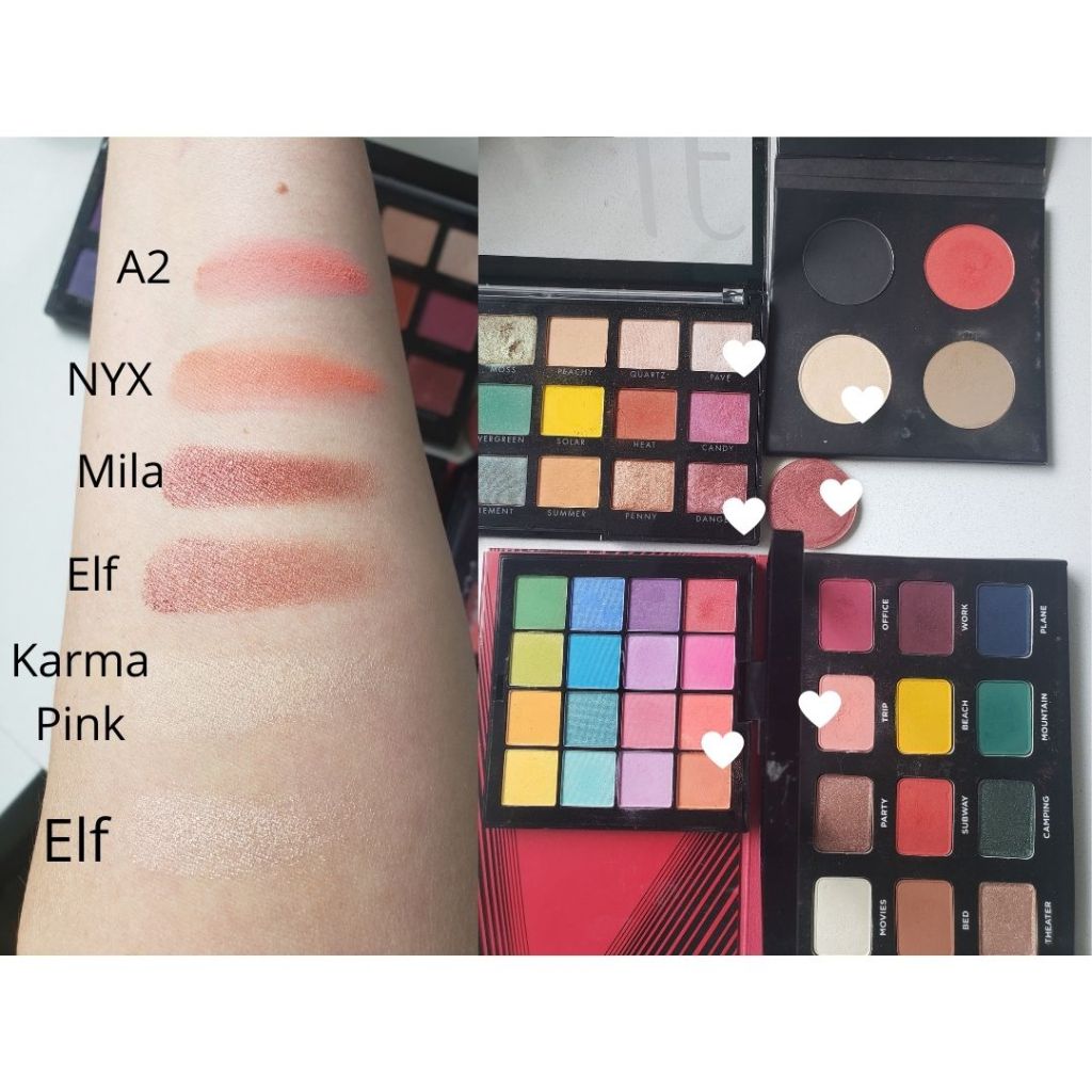 Así las de A2 y Karma tienen el mismo precio x sombra, aunque Karma algo más ecónomico porque trae más gramos cada una (2,5grs vs 3,2grs). Les diría que desde ese lugar sería cuestión de hacer cuentas con el envío. Las 2 están super, pero KarmaPink tiene más opciones y la posiblidad de crear tu propia paleta. La de A2 solo tienen esa paleta y el resto son pigmentos sueltos, no sombras.