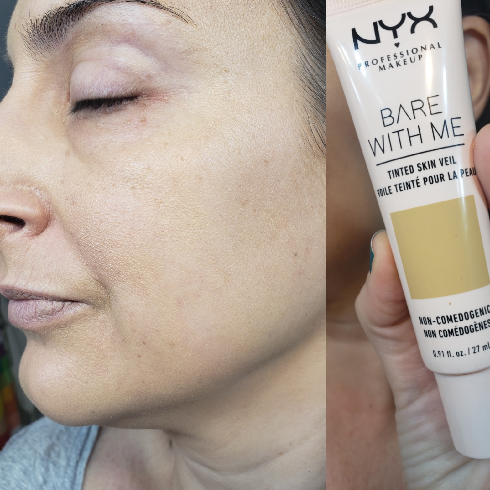 En el otro lado, tenemos la Bare With Me de NYX, que se presenta como una «tinta» para la piel. Yo comencé a tenerla en el radar, porque muchas maquilladoras españolas la comentaban como una versión económica de la Wonder Light de Charlotte Tilbury. Aclaro que la de Charlotte no me gusta nada, pero dije, quizás por 3 veces menos del precio, le tome cariño a esta. Pero no fué el caso….