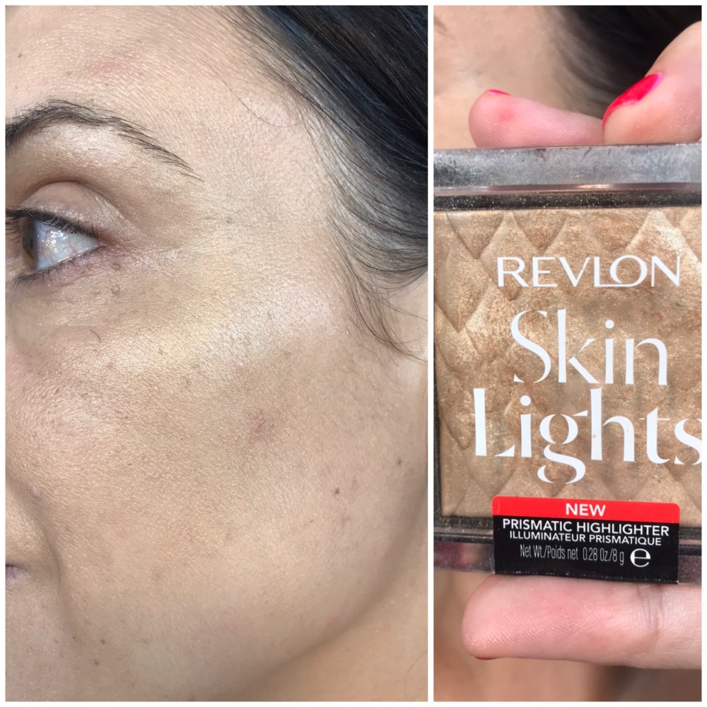 Ahora, vamos con el de Revlon. Que es muuuuuy parecido al de Rimmel High Light, aunque quizás apenas menos dorado. Pero en textura y en la piel se ve muy similar.