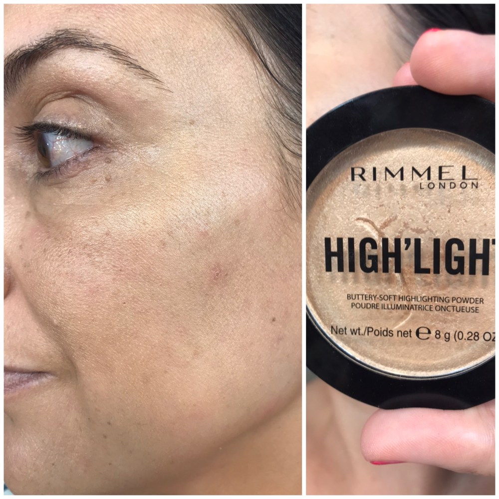 En ambas fotos (Rimmel Paleta vs Rimmel individual) quizás no se nota mucha diferencia en las fotos, pero en vivo aunque el tono es idéntico entre ellas, el individual es mucho más potente y al lado del de MAC de la paleta (el Gold Coasting), también es prácticamente el mismo tono. De los 3, me quedo sin pensarlo, con el High’Light de Rimmel porque se amolda mejor a la piel.