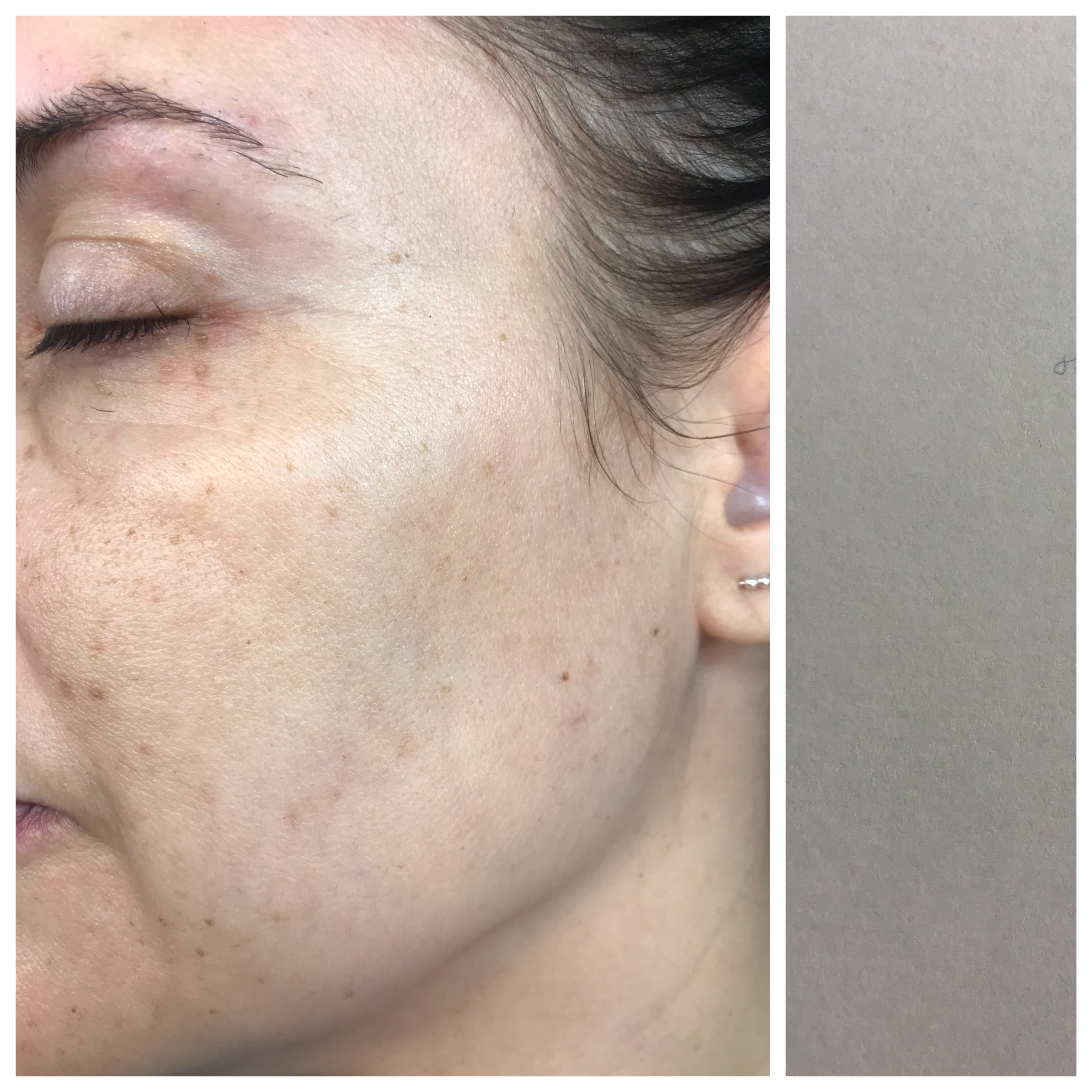 Creo que podrán notar claramente que lo más visible de esta base es justamente que no es visible. Es un base 2da piel, que deja ver todas mis marcas y manchas, aporta una cobertura muy muy baja. Que si bien, se pueden sumar capas, no siento que sea modulable. Es decir, no queda nada pesada pero tampoco aumenta la cobertura e simple hecho de poner más cantidad de producto.