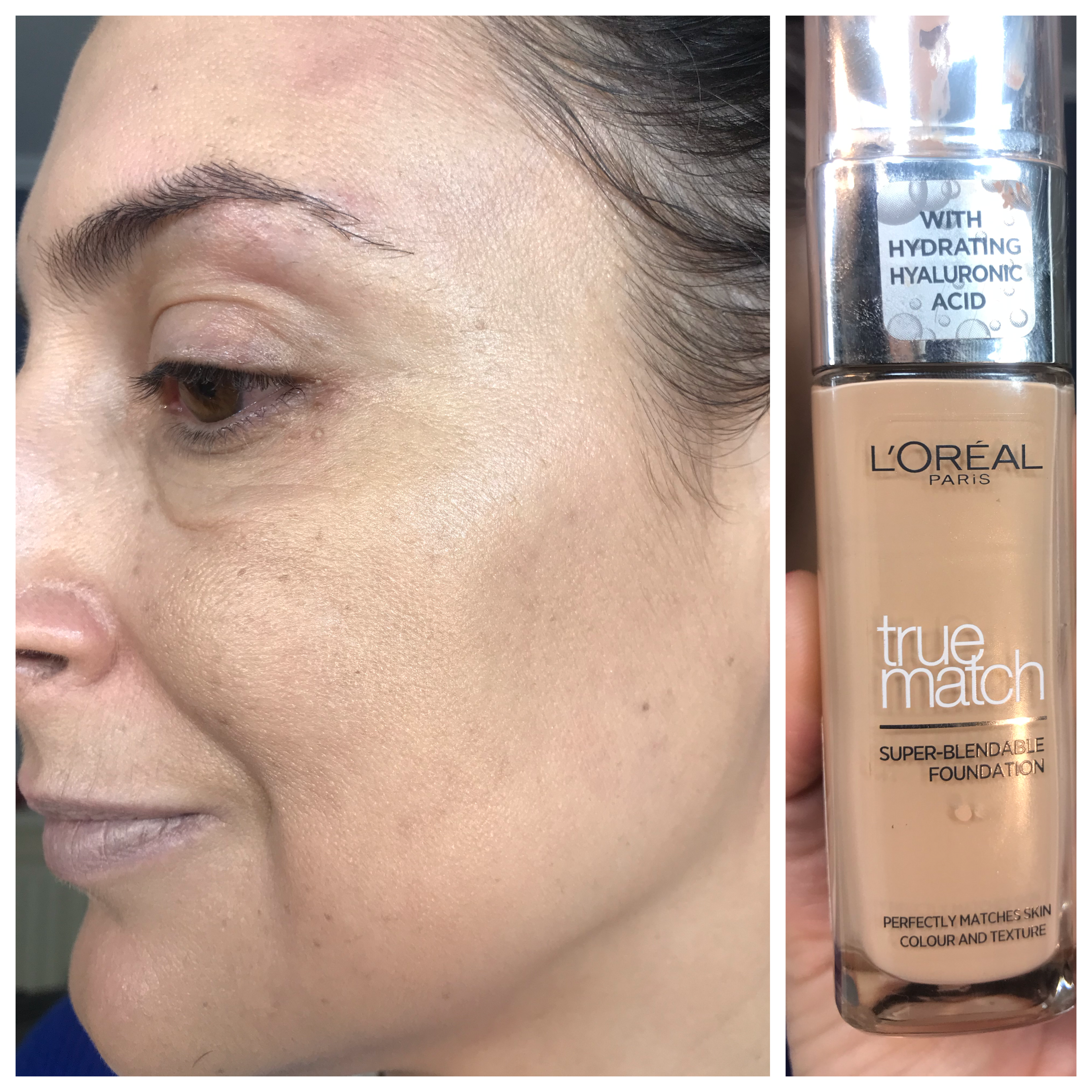 Miren como queda su hermana True Match clásica, que NO promete glow, sino un efecto natural. Esta también tiene en su fórmula ácido hialurónico (aunque menos cantidad) y glicerina (mucho más que el serum). Además esta no tiene alcohol denat entre sus primeros ingredientes (cosa que la base serum si…evidentemente para lograr la fluidez).