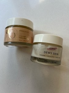 Por un lado, de Dôrem nuevamente, su crema Hydra Glow. En este caso, se presenta como una «crema gel» que huele igual de rica que su serum. Y tiene una textura que es como una crema que se evapora. O sea. No la sentí «gelificada», sino como una crema que lejos de ser densa, es super liviana pero por sus componentes, realmente hidrata y me atrevería a decir humecta super bien. De hecho, en su pack dice «retrasa la pérdida transepidérmica de agua». Tiene hialurónico, Liposomas y vitaminas A, C &E , que actúan en parte como anti-oxidantes. Me pareció además super rendidora. No sé si será por su textura o qué, pero la usé duro y parejo y todavía tengo medio pote lleno. Como me gusta mucho el acabado que tiene (glow pero sin ser densa) la dejé para uso diurno.