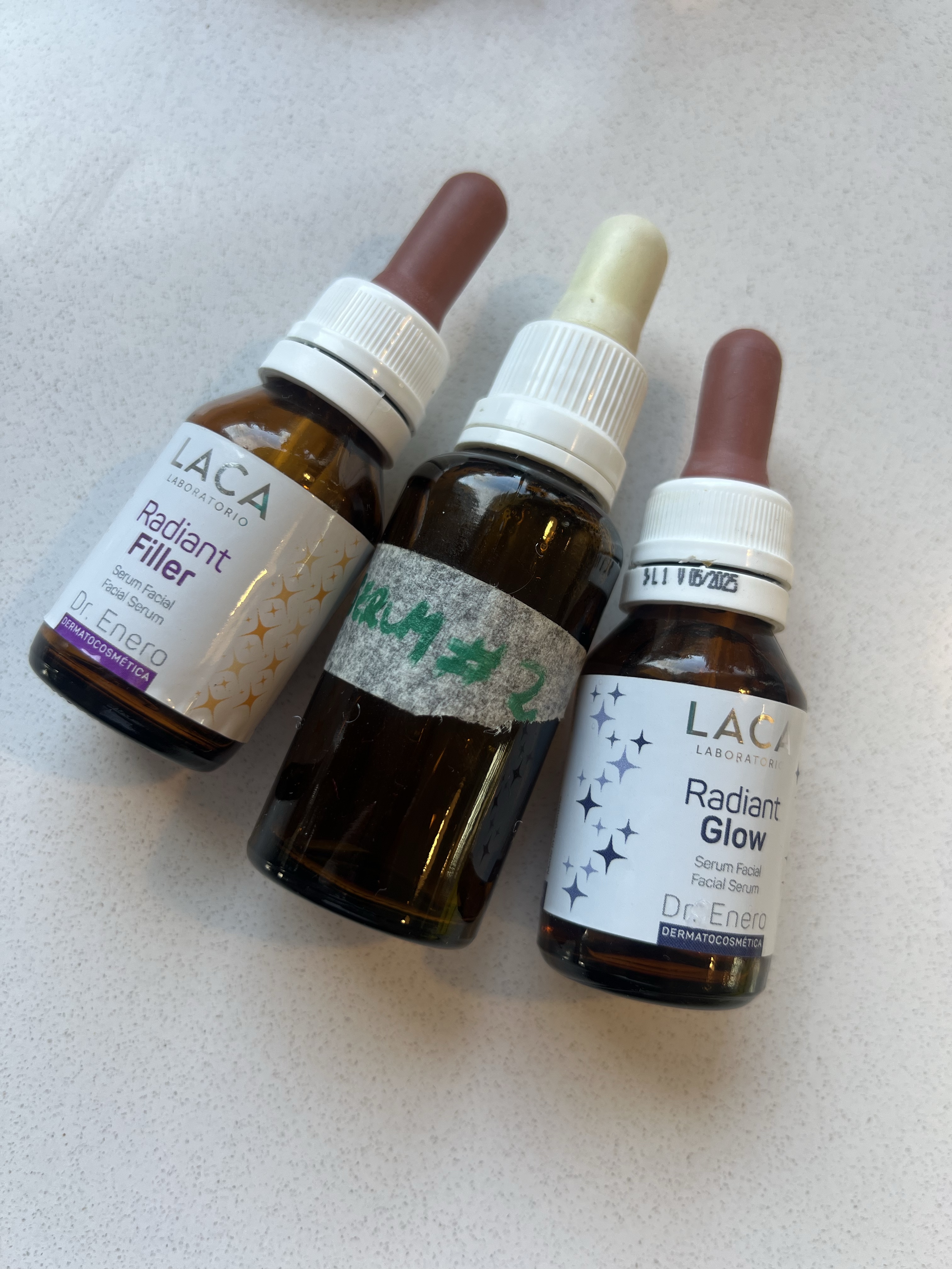 En este grupo fui cambiando sobre la marcha. Arranqué con las novedades que me envió Laca: Radiant Filler y Radiant Glow. Estos dos serums, si bien se pueden usar de noche también, decidí usarlos en mi piel limpia de la mañana. Radiant Filler tiene ácido hialurónico 4d y vitamina c, posicionado para pieles maduras con arrugas. Radiant Glow con el complejo Lumiglow y Nicotinamida R(Niacinamida) para dar luminosidad a la piel.