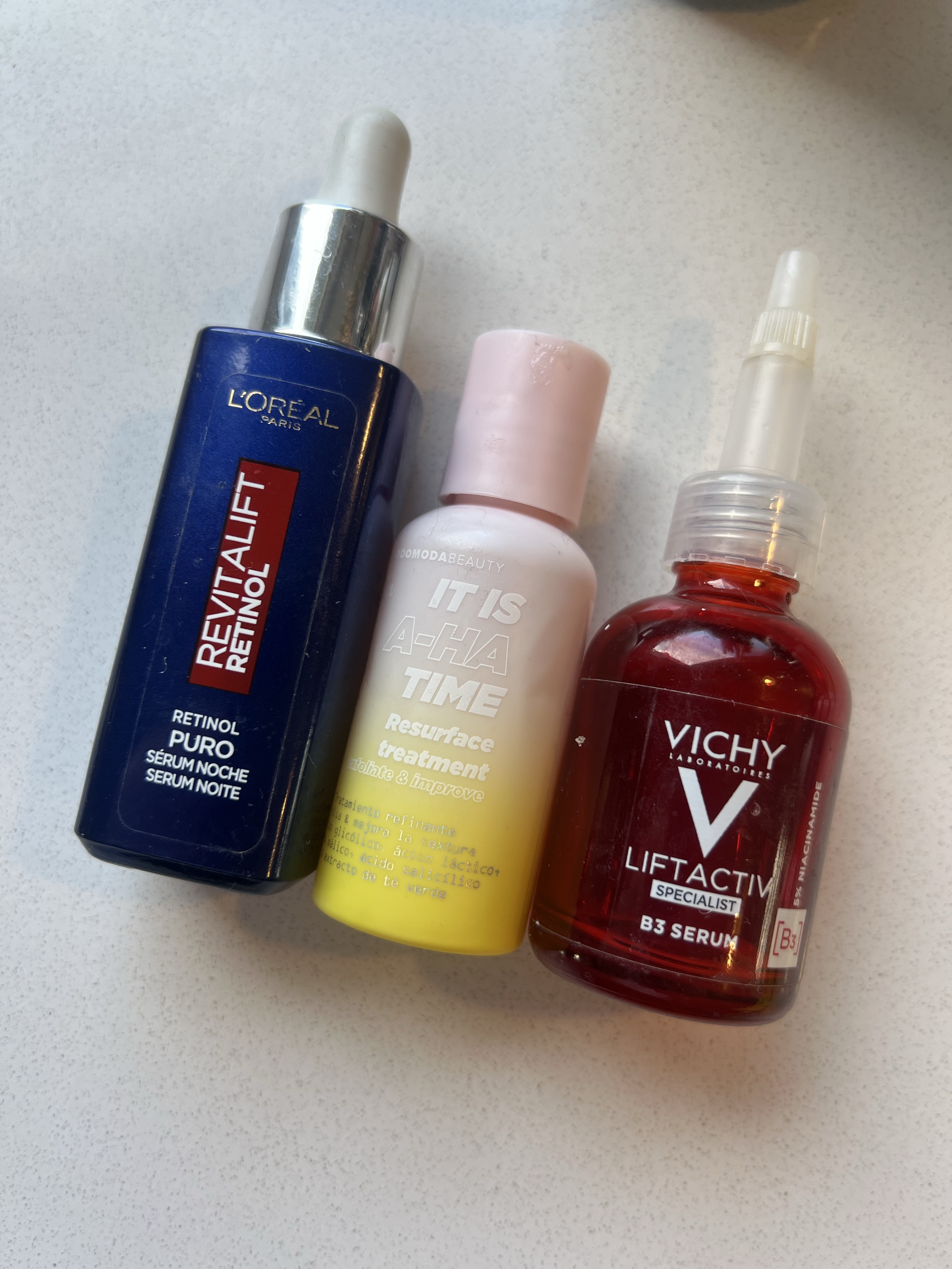 PD: La última parte de esta rutina, sin Bakuchiol a la vista, volví también a los amados de mi rutinas anteriores como el Retinol de LÓréal y el aha´s de Todo Moda Rutina anterior y el B3 de Vichy Review B3