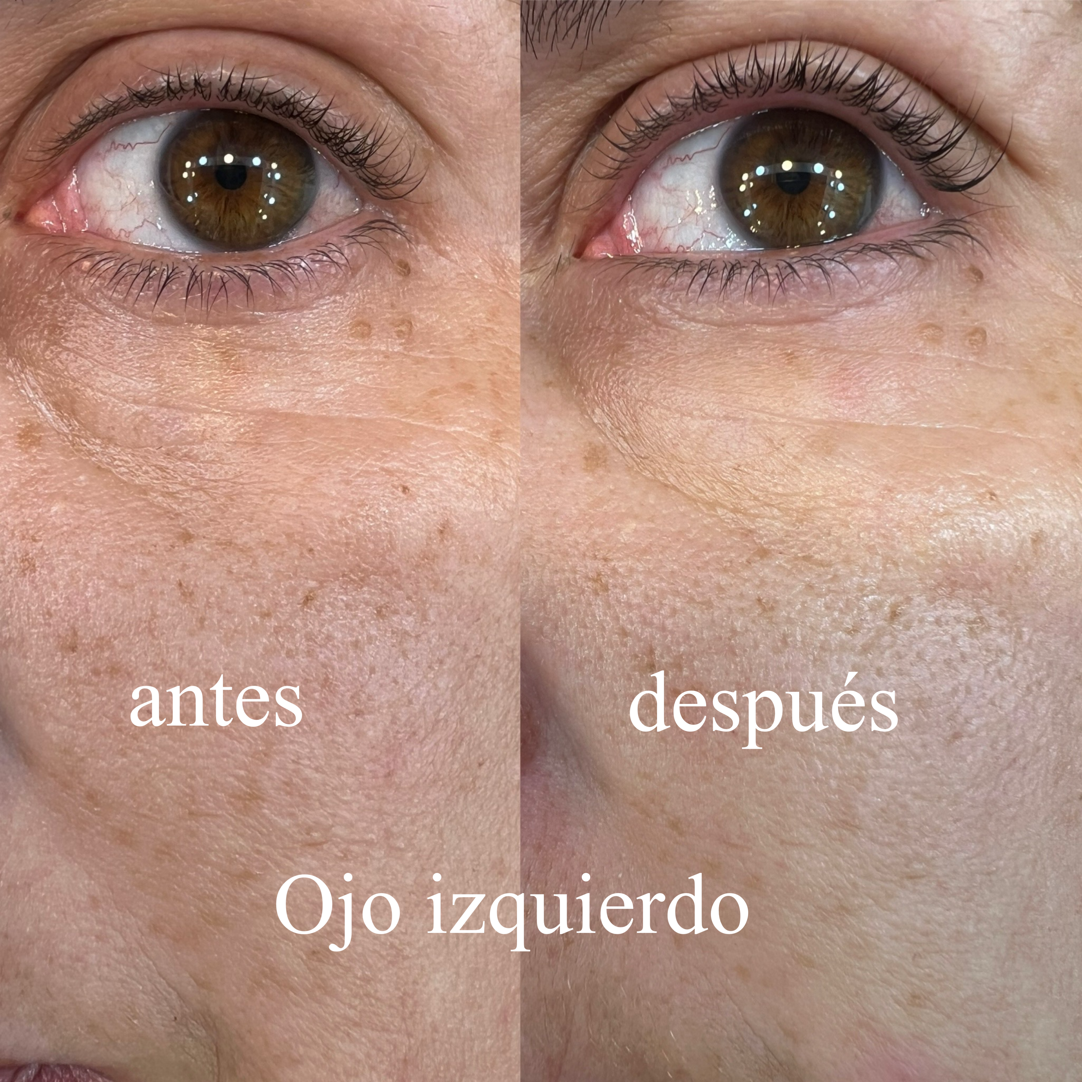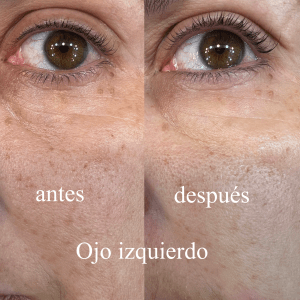 Acá los resultados, después de 8 semanas. Me lo apliqué en frente, arrugas peribucales y en 1 solo ojo, el izquierdo, para ver si había diferencia sobre el derecho, donde no apliqué nada.