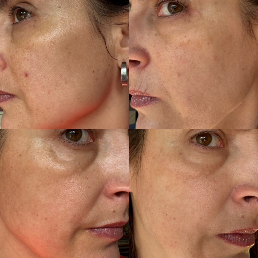 Dicho todo esto, les voy a dejar un antes y después para ver si alguien descubre alguna diferencia de «tono?» «blanqueamiento» o menos manchas, usándola casi por los dos meses completos.