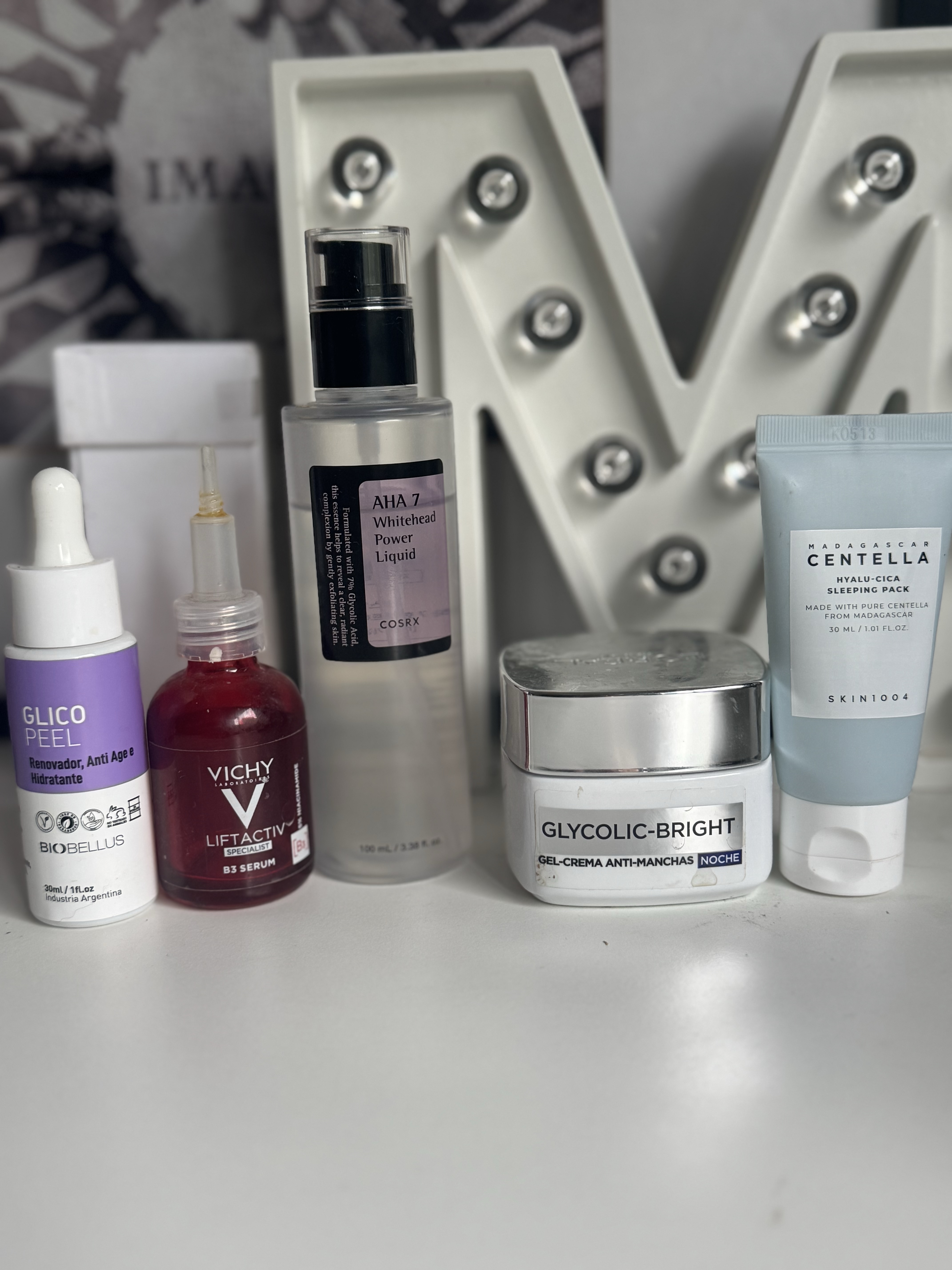 Al viaje, como no quería innovar mucho e iba a estar bastante expuesta al sol (en los parques de Disney y unos poquitos días de playa) seguí con un producto que había empezado en la rutina anterior pero como fueron pocas semanas no lo incluí en la review: el serum Glicopeel de Biobellus. Este serum como su nombre lo indica tiene ácido glicólico al 8% + glucolactona y ácido hialurónico. Que viendo la fórmula y los resultados, estoy en posición de confirmarles que es exactamente el mismo producto de byderm (ex byshe?) skin8 acá esa review. Un exfoliante suave y con una leve acción hidratante que ayuda a pieles quizás no tan resistentes y más sensibles.